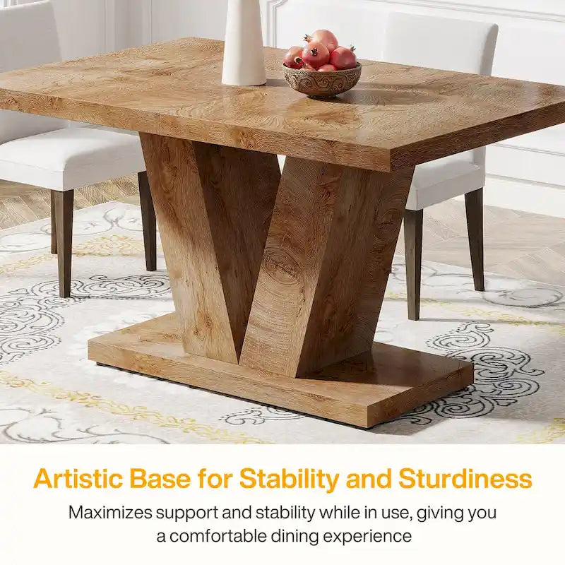 Elegantly simple, our rustic wood dinner table comfortably seats 4-6 people, making it ideal for family dinners or gatherings with friends. Measuring 47.2 W x 31.5 D x 29.9 H with a 250 lb load capacity, it's perfect for small spaces. Adapt to your aesthetic with this versatile, industrial-style piece that fits seamlessly in your home or commercial settings, from kitchens and cafes to living rooms and breakfast nooks.