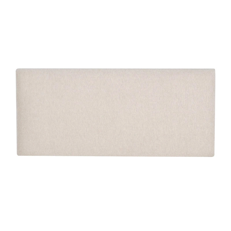 - The bench comes with a comfortable upholstered cushion in a natural, neutral toned fabric, providing comfort and a peaceful aesthetic