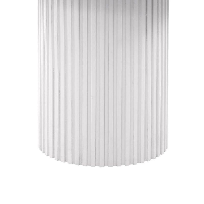 - Round pedestal base with vertical reeded details provides texture
