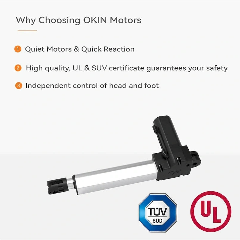 Massage With OKIN Motors:All adjustable bed frames are equipped with the German-engineered OKIN motor system, including massage and foot/head Incline. Full body massage with 3 intensity levels, 3 modes including wave, pulse, and full body vibration with a 10 to 30-minute timer option, that will help to release muscle fatigue.