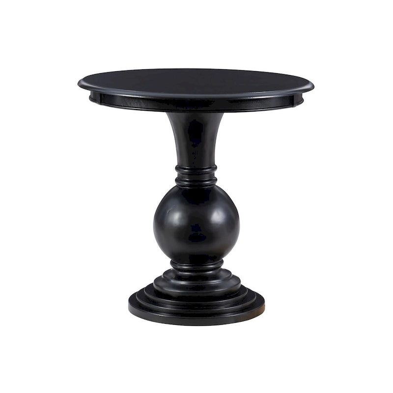 This contemporary Espresso accent table is the perfect chairside table for any room. Features a round pedestal base, made from select hardwood veneers and solid wood material, and has contemporary styling with a bentwood skirt. Some assembly required.