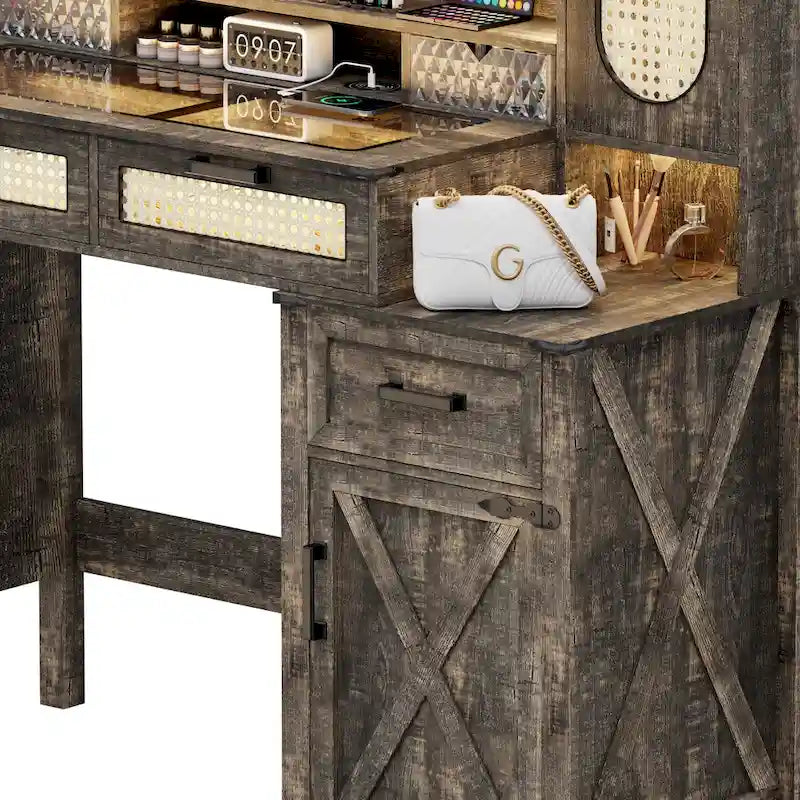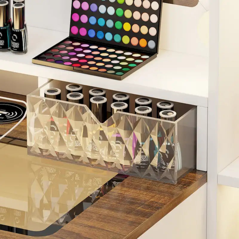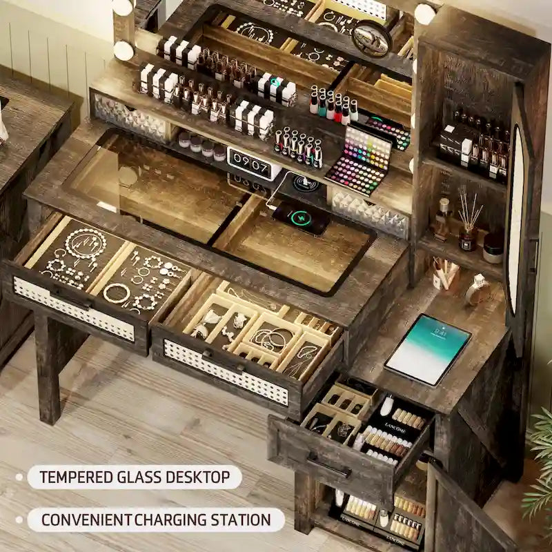 The desktop of the makeup vanity is equipped with charging station, USB port type-c ports, which can easily charge your mobile phone, iPad and other electronic devices.