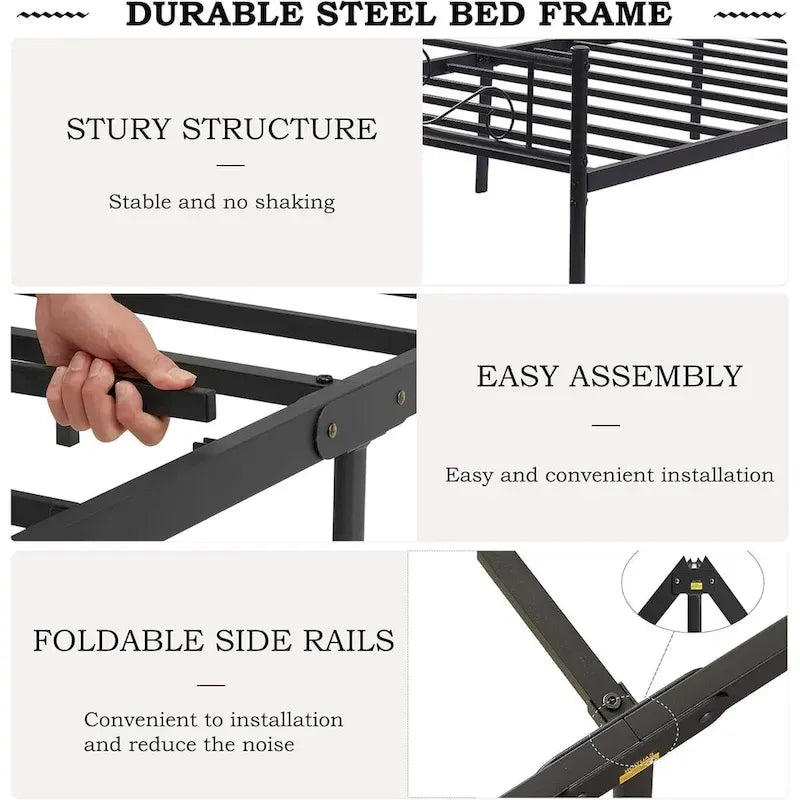 STRONG AND LONG-LASTING METAL FRAME: Built with premium steel, this bed frame ensures a strong, consistent foundation for your mattress. It provides remarkable durability, offering long-lasting stability and strength, even for heavier mattresses.
