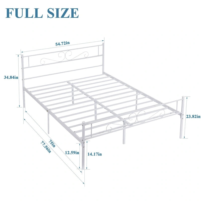 Strong and Long-lasting Support: Twin/Full/Queen size bed frame features a sturdy metal construction with a weight capacity of up to 500 pounds. With 12 heavy-duty metal slats and 9 sturdy legs, it provides reliable support for a peaceful and restful night's sleep.