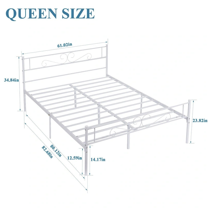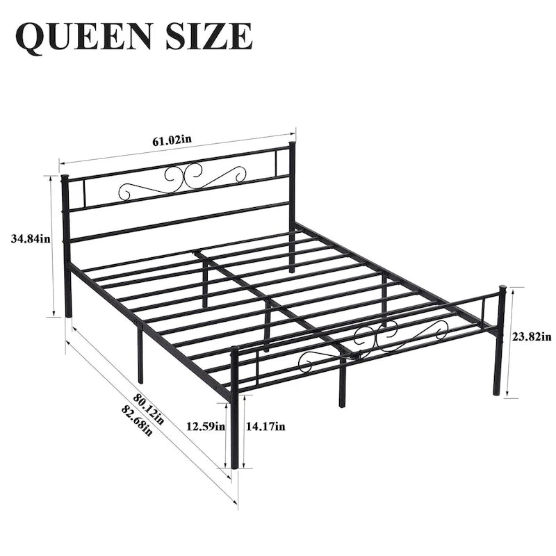 HIGH HEADBOARD: The mix of straight lines and beautifully curved edges creat a grand and elegant style in any master suite or guest bedroom. The perfect design of queen bed frames prevent accidental bumps and bruises. The 35 high headboard and footboard of this metal queen platform bed can easily fit mattresses of varying thicknesses.