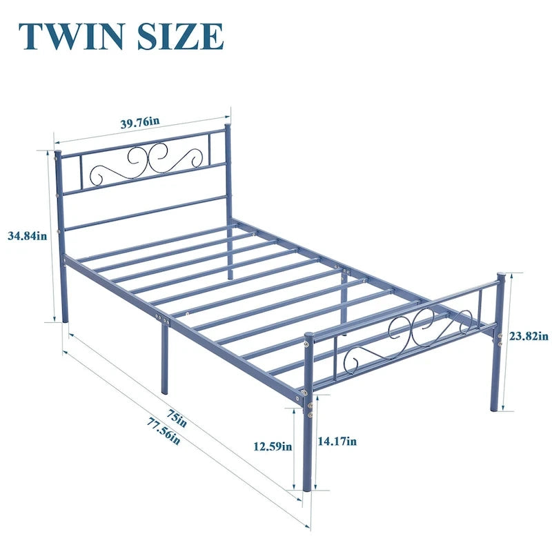 VECELO Easy Set-up Premium Metal Bed Frame Platform Mattress Foundation with Headboard ,Under-bed Storage,Multiple Sizes. This metal bed frame foundation is made from durable, premium quality metal to provide sturdy support for your mattress.It is a unique, easy-to-assemble sturdily construction system that will provide you with reliable and convenient bedding support. Strong metal tubing construction and Full-length provide safety comfortable sleep environment. This Metal Bed Frame is a tasteful welcome to any bedroom.