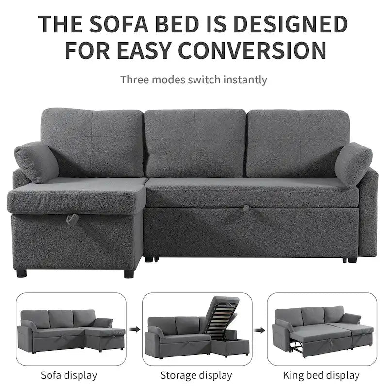 Pull Out Sofa Bed with Storage Chaise L Shape Sectional Sofa Bed