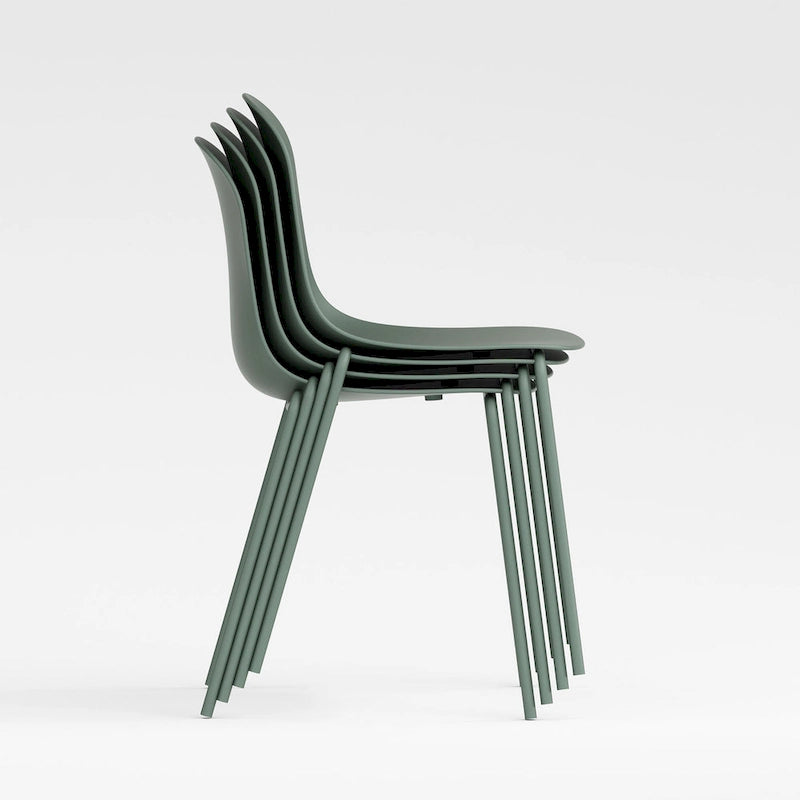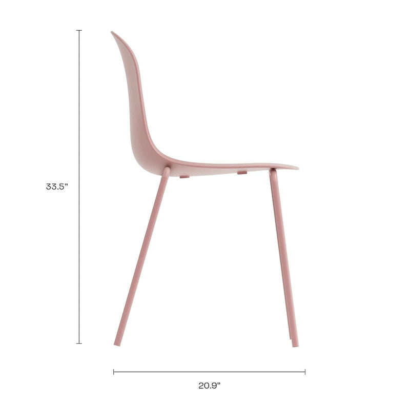 Classically simple yet amazingly versatile, the Serena Chair is a staple for any space. The midcentury-inspired chair features a slim contoured molded seat for seamless comfort and a sturdy steel frame. The simplicity of the design makes it a timeless piece that goes well in any setting and suits whatever your needs are. While perfect as a dining chair, its also just the right size for a desk, or entryway chair, or pair it with a bistro table on the patio. The surprisingly weatherproof chair is great for both indoors and outdoors and comes in a variety of chic, monochrome colors. Slightly textured polypropylene seat is easy to clean. Stackable for easy storage. Easy to assemble. Measures 19.7W x 20.9D x 33.5H. Seat height 18.5.