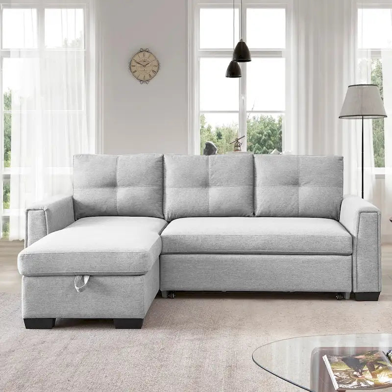 Tufted Sectional Chaise Sofa Sleeper with Storage