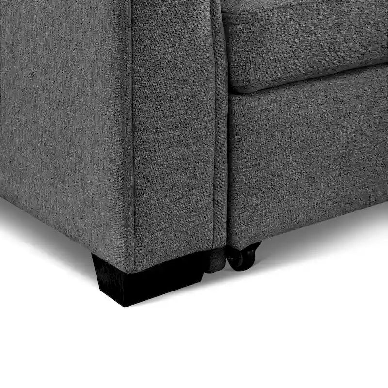 The compact size of this 91.7 sleeper sectional makes it ideal for homes where space is at a premium. The chaise has a reversible design that allows you to customize it to better suit your home. It is constructed with a wood frame and slightly tapered legs. The sectional is upholstered in fabric, and you may choose the color you would like to match your decor. With its foam-filled cushions, this sectional provides the right amount of support while you read or relax. This sectional can also be used as an additional spot to sleep. Overnight guests will be able to rest comfortably on the pull-out sleeper. There is a storage in the chaise that can be used to store blankets and pillows.