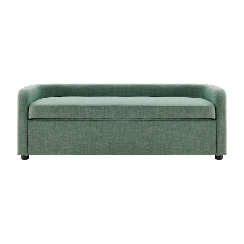 For a stylish storage solution, opt for the latest Wendy bench. Perfect for a variety of spaces such as the bedroom, the foyer and the living room. Its modern format is also nicely upholstered with eco-friendly 100% PES fabric or in vintage cider faux leather. Easy Assembly. Available in Meridian Sea Green, Meridian Cream and Vintage Cedar.